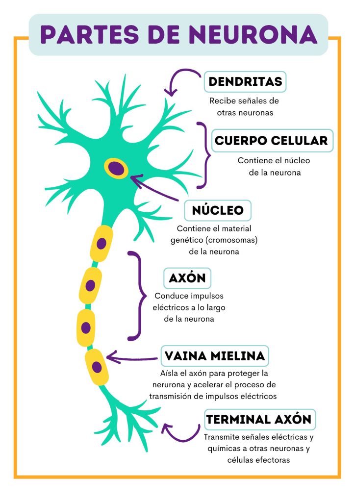 Cada neurona tiene una estructura precisa, diseñada para comunicarse de manera eficiente. Sus partes trabajan como un sistema perfectamente coordinado, donde cada componente cumple una función esencial.